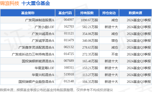 重仓锦浪科技的前十大公募基金请见下表: