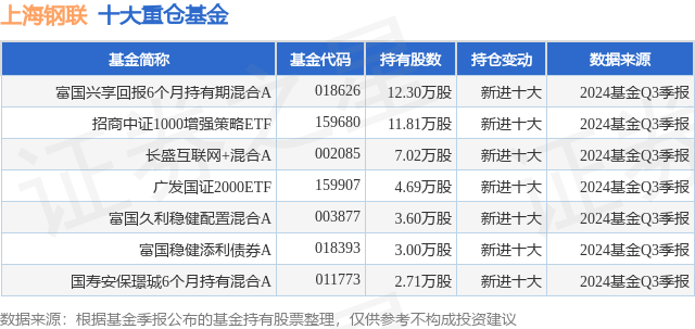 根据2024基金Q3季报公募基金重仓股数据,重仓该股的公募基金共7家,其中持有数量最多的公募基金为富国兴享回报6个月持有期混合A。富国兴享回报6个月持有期混合A目前规模为1.75亿元,最新净值1.0328(12月5日),较上一交易日上涨0.56%,近一年上涨3.4%。该公募基金现任基金经理为刘兴旺。刘兴旺在任的基金产品包括:富国裕利债券A,管理时间为2022年7月28日至今,期间收益率为7.46%;富国双利增强债券A,管理时间为2022年9月26日至今,期间收益率为4.24%;富国久利稳健配置混合A,管理时间为2022年12月8日至今,期间收益率为13.34%;富国优化增强债券A/B,管理时间为2022年12月23日至今,期间收益率为12.47%。