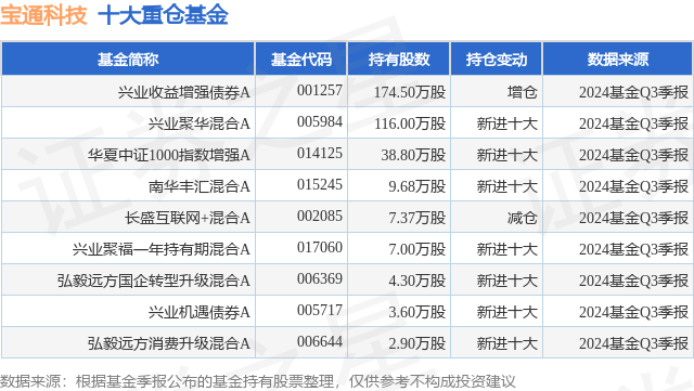重仓宝通科技的公募基金请见下表: