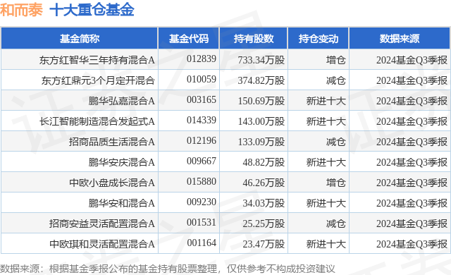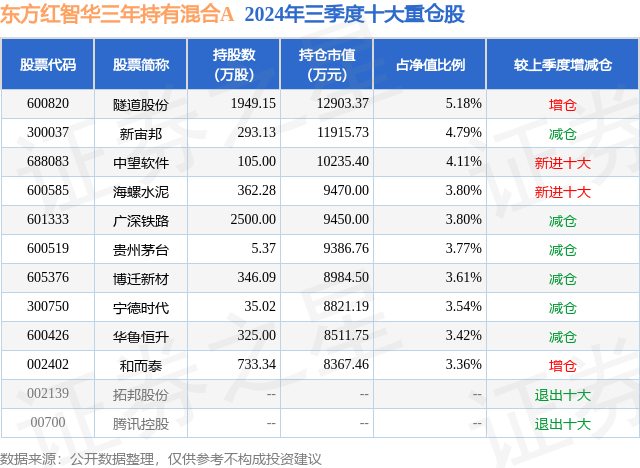根据2024基金Q3季报公募基金重仓股数据,重仓该股的公募基金共15家,其中持有数量最多的公募基金为东方红智华三年持有混合A。东方红智华三年持有混合A目前规模为24.35亿元,最新净值0.7724(12月5日),较上一交易日上涨0.12%,近一年上涨16.1%。该公募基金现任基金经理为周云。周云在任的基金产品包括:东方红新动力混合A,管理时间为2015年9月14日至今,期间收益率为176.74%;东方红京东大数据混合A,管理时间为2015年9月14日至今,期间收益率为192.7%;东方红睿轩三年定开混合,管理时间为2022年5月21日至今,期间收益率为21.33%;东方红优享红利混合A,管理时间为2022年7月16日至今,期间收益率为22.16%。
