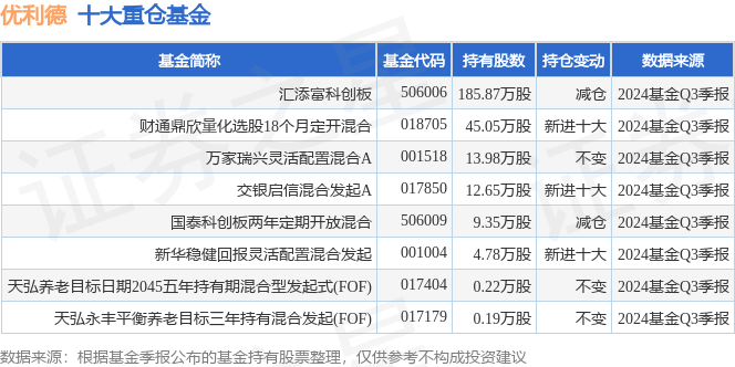 重仓优利德的公募基金请见下表: