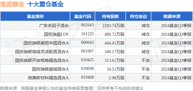 重仓宝武镁业的公募基金请见下表: