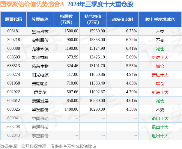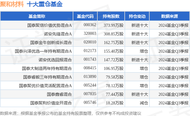 重仓聚和材料的前十大公募基金请见下表: