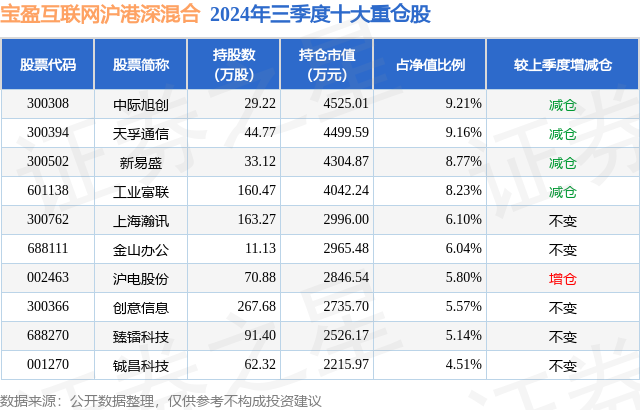 宝盈互联网沪港深混合的前十大重仓股如下: