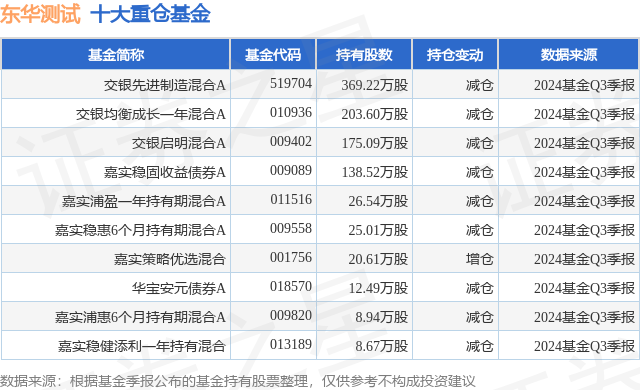 重仓东华测试的前十大公募基金请见下表: