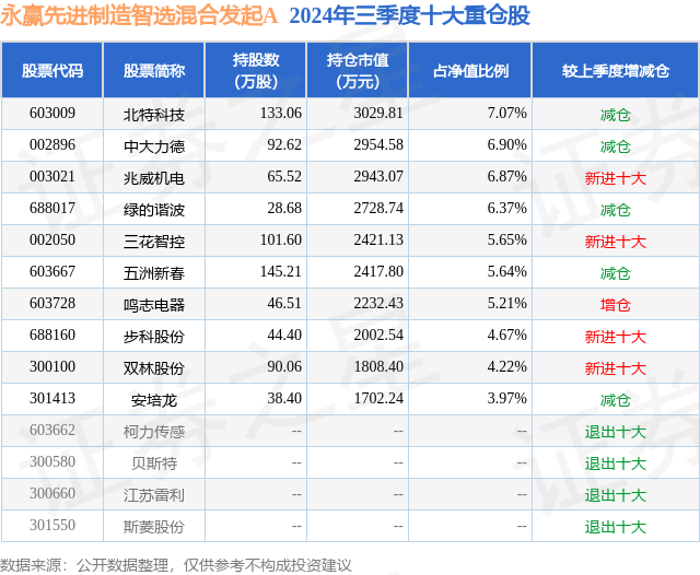永赢先进制造智选混合发起A的前十大重仓股如下:
