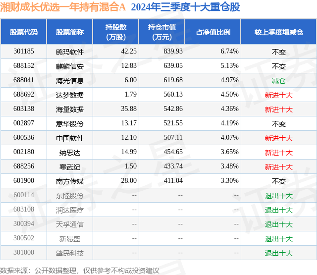 湘财成长优选一年持有混合A的前十大重仓股如下:
