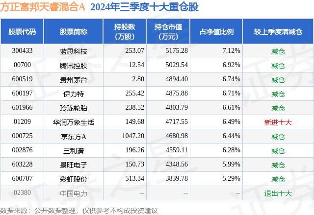 根据2024基金Q3季报公募基金重仓股数据,重仓该股的公募基金共5家,其中持有数量最多的公募基金为方正富邦天睿混合A。方正富邦天睿混合A目前规模为3.34亿元,最新净值1.1849(12月10日),较上一交易日上涨0.82%,近一年上涨6.67%。该公募基金现任基金经理为汤戈。汤戈在任的基金产品包括:方正富邦致盛混合A,管理时间为2024年2月5日至今,期间收益率为7.61%。