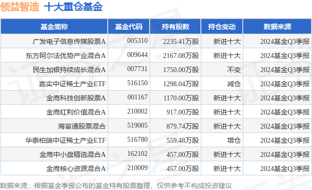 重仓领益智造的前十大公募基金请见下表: