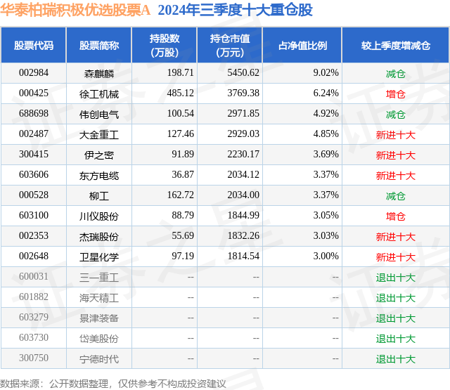 华泰柏瑞积极优选股票A的前十大重仓股如下: