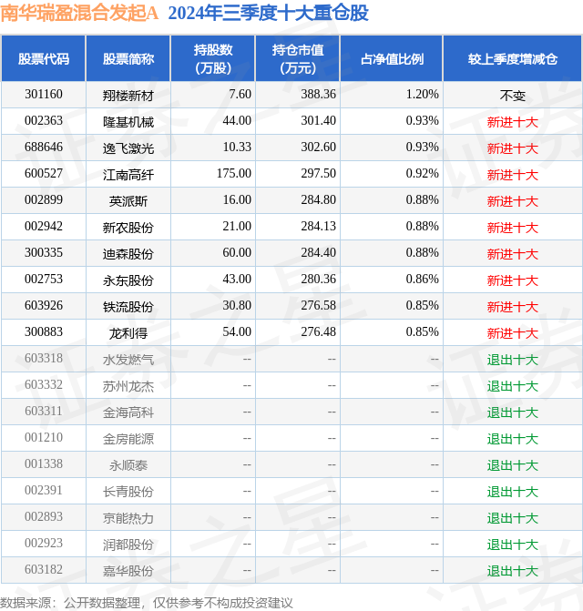 重仓翔楼新材的公募基金请见下表: