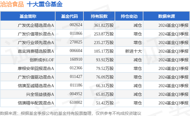 重仓洽洽食品的前十大公募基金请见下表: