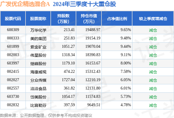 广发优企精选混合A的前十大重仓股如下:
