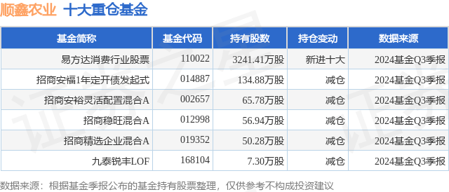 重仓顺鑫农业的公募基金请见下表: