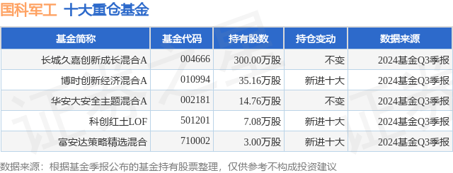 重仓国科军工的公募基金请见下表: