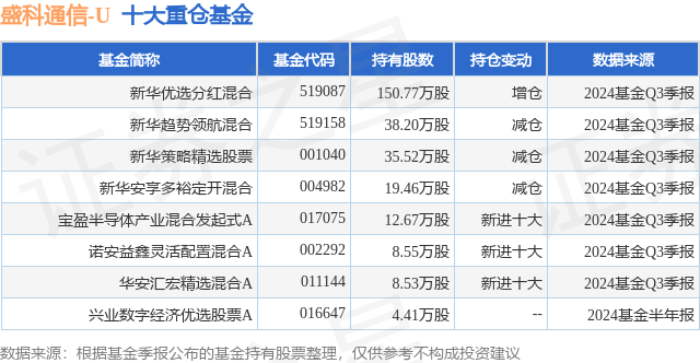 重仓盛科通信-U的公募基金请见下表: