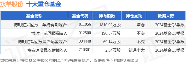 重仓水羊股份的公募基金请见下表: