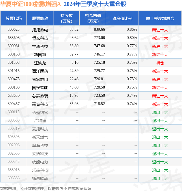 华夏中证1000指数增强A的前十大重仓股如下:
