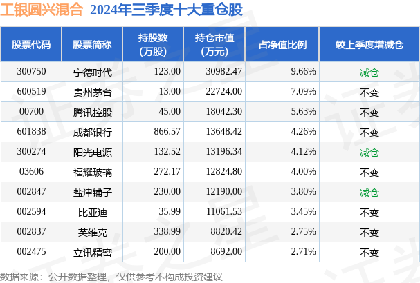工银圆兴混合的前十大重仓股如下: