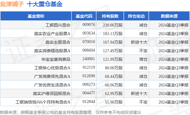 重仓盐津铺子的前十大公募基金请见下表: