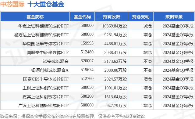 重仓中芯国际的前十大公募基金请见下表: