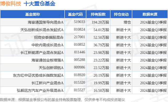 重仓博俊科技的前十大公募基金请见下表: