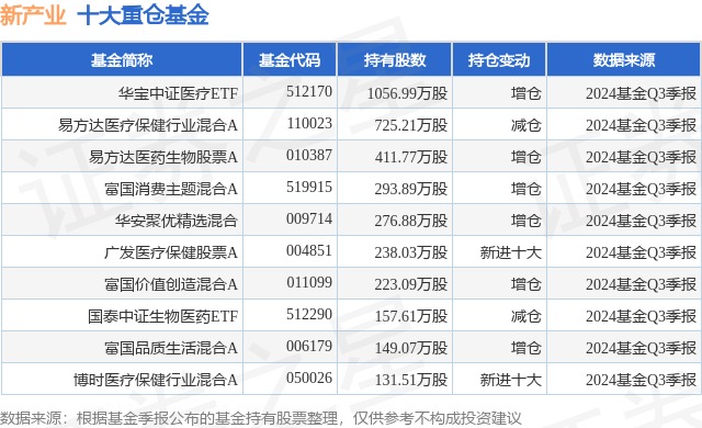 重仓新产业的前十大公募基金请见下表: