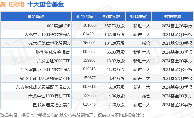 重仓聚飞光电的前十大公募基金请见下表: