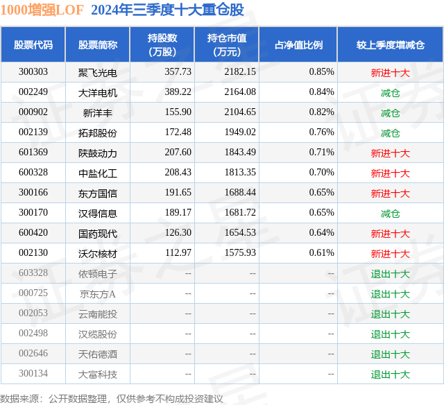 1000增强LOF的前十大重仓股如下: