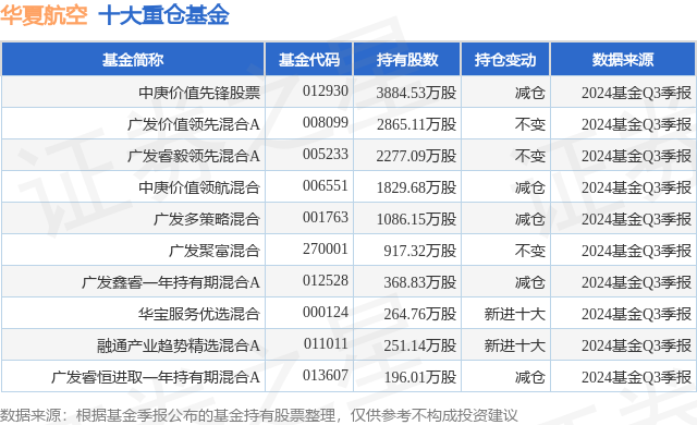 重仓华夏航空的前十大公募基金请见下表: