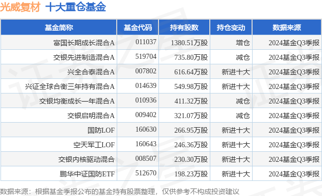 重仓光威复材的前十大公募基金请见下表: