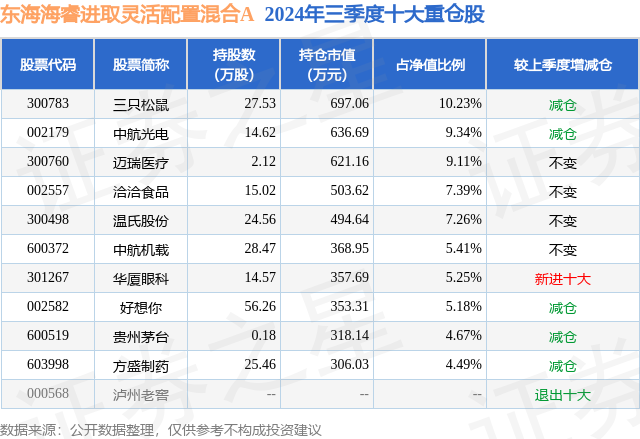 东海海睿进取灵活配置混合A的前十大重仓股如下: