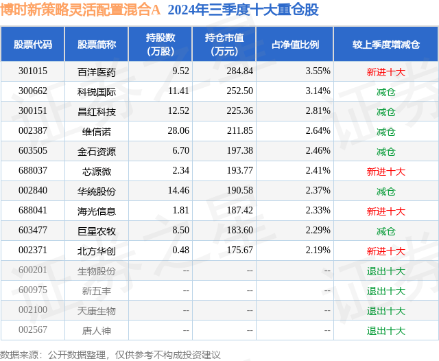 博时新策略灵活配置混合A的前十大重仓股如下: