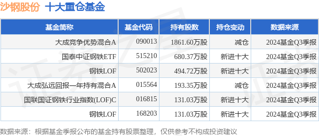 重仓沙钢股份的公募基金请见下表: