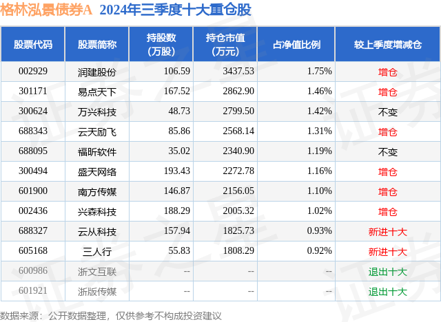 格林泓景债券A的前十大重仓股如下:
