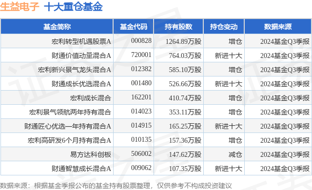 重仓生益电子的前十大公募基金请见下表: