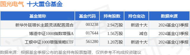 重仓国光电气的公募基金请见下表: