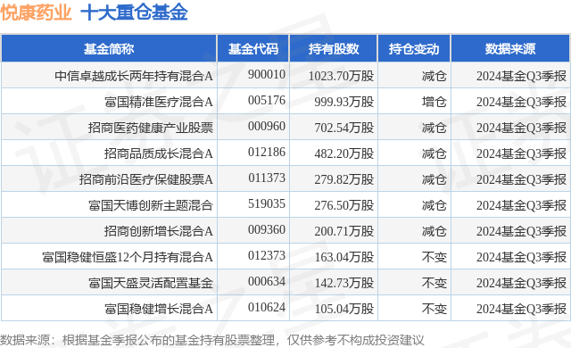 根据2024基金Q3季报公募基金重仓股数据,重仓该股的公募基金共21家,其中持有数量最多的公募基金为中信卓越成长两年持有混合A。中信卓越成长两年持有混合A目前规模为12.96亿元,最新净值1.6958(12月27日),较上一交易日下跌0.18%,近一年上涨4.57%。该公募基金现任基金经理为魏来。