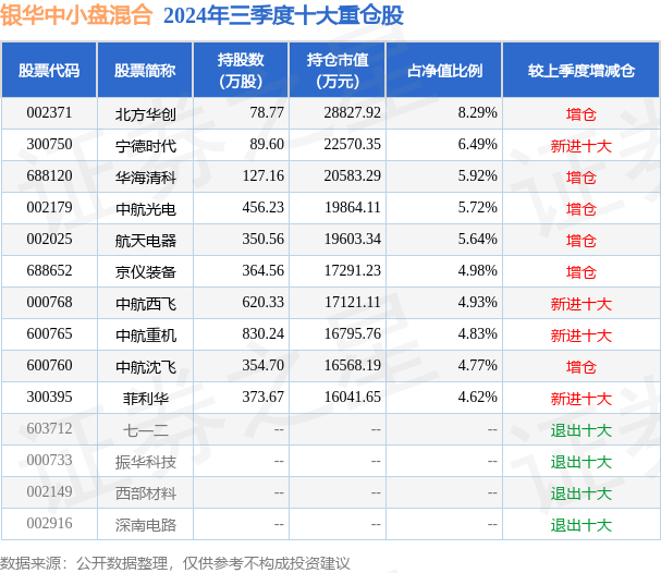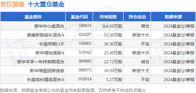 根据2024基金Q3季报公募基金重仓股数据,重仓该股的公募基金共7家,其中持有数量最多的公募基金为银华中小盘混合。银华中小盘混合目前规模为34.76亿元,最新净值2.33(12月27日),较上一交易日下跌0.68%,近一年上涨1.48%。该公募基金现任基金经理为李晓星 张萍 杜宇。李晓星在任的基金产品包括:银华盛世精选灵活配置混合发起式A,管理时间为2016年12月22日至今,期间收益率为120.76%;银华心诚灵活配置混合A,管理时间为2018年3月12日至今,期间收益率为42.95%;银华心怡灵活配置混合A,管理时间为2018年7月5日至今,期间收益率为160.06%。张萍在任的基金产品包括:银华盛世精选灵活配置混合发起式A,管理时间为2018年11月6日至今,期间收益率为95.9%;银华心诚灵活配置混合A,管理时间为2019年3月19日至今,期间收益率为51.18%;银华心怡灵活配置混合A,管理时间为2019年9月20日至今,期间收益率为76.91%。杜宇在任的基金产品包括:银华丰享一年持有期混合,管理时间为2022年1月26日至今,期间收益率为-28.13%;银华心质混合A,管理时间为2023年3月30日至今,期间收益率为-12.24%。