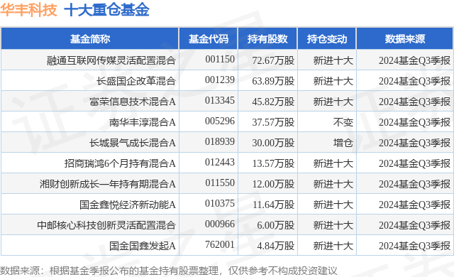 重仓华丰科技的前十大公募基金请见下表:
