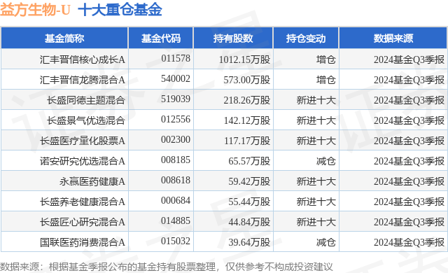 重仓益方生物-U的前十大公募基金请见下表: