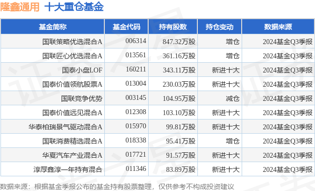 根据2024基金Q3季报公募基金重仓股数据,重仓该股的公募基金共21家,其中持有数量最多的公募基金为国联策略优选混合A。国联策略优选混合A目前规模为7.9亿元,最新净值1.8791(12月27日),较上一交易日下跌0.84%,近一年上涨8.67%。该公募基金现任基金经理为柯海东。柯海东在任的基金产品包括:国联竞争优势,管理时间为2019年1月25日至今,期间收益率为184.42%;国联鑫锐精选一年持有混合A,管理时间为2021年4月29日至今,期间收益率为-20.54%;国联匠心优选混合A,管理时间为2021年11月2日至今,期间收益率为-20.88%。