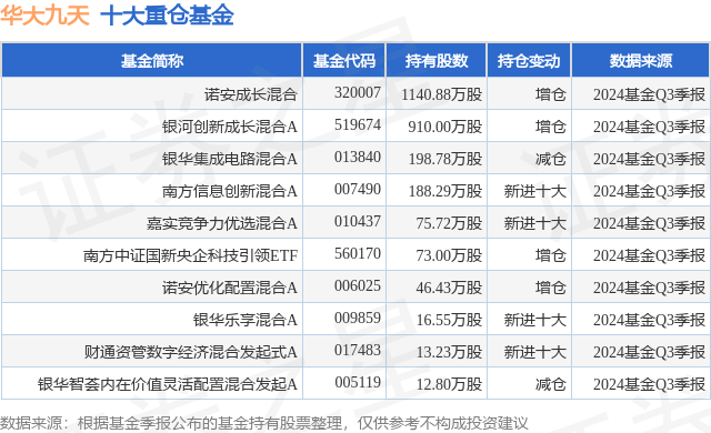 重仓华大九天的前十大公募基金请见下表: