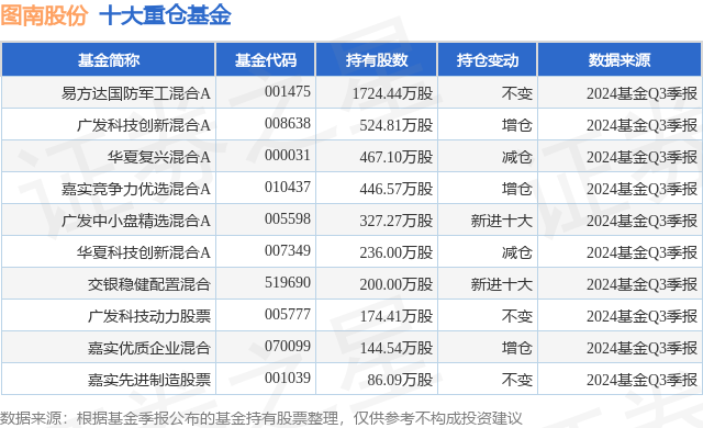 重仓图南股份的前十大公募基金请见下表: