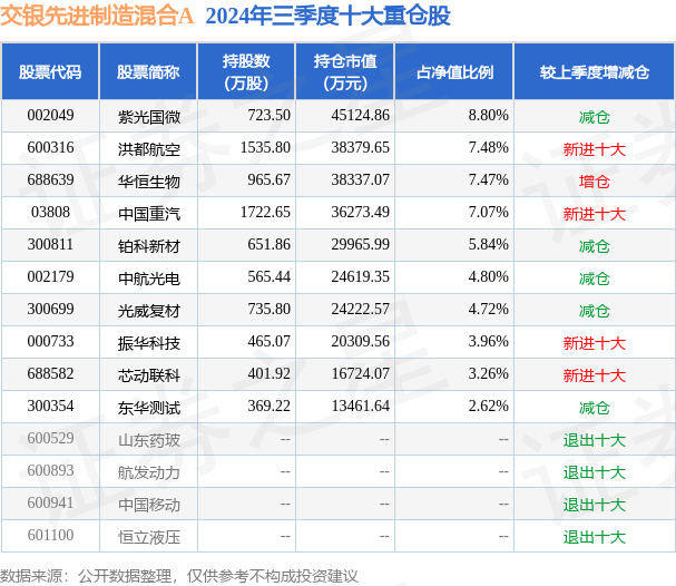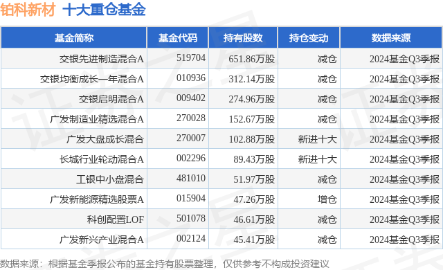 根据2024基金Q3季报公募基金重仓股数据,重仓该股的公募基金共23家,其中持有数量最多的公募基金为交银先进制造混合A。交银先进制造混合A目前规模为50.91亿元,最新净值3.732(12月30日),较上一交易日上涨0.05%,近一年上涨6.04%。该公募基金现任基金经理为刘鹏。刘鹏在任的基金产品包括:交银启明混合A,管理时间为2020年5月27日至今,期间收益率为28.3%;交银均衡成长一年混合A,管理时间为2021年2月1日至今,期间收益率为-12.68%。