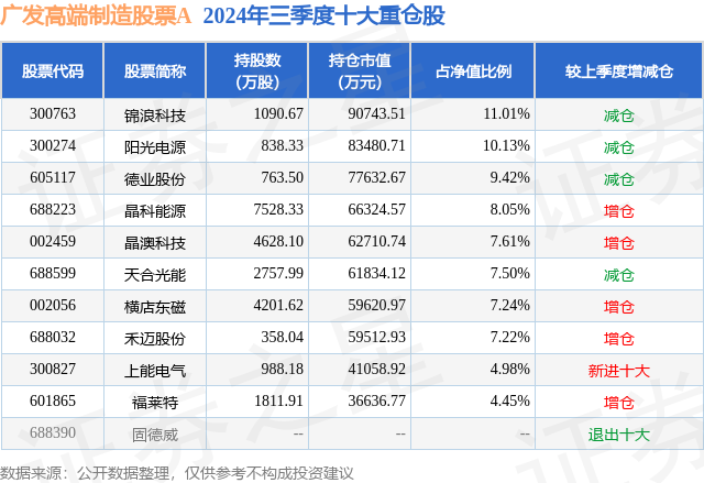 重仓锦浪科技的前十大公募基金请见下表: