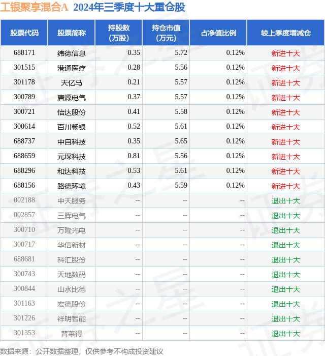根据2024基金Q3季报公募基金重仓股数据,重仓该股的公募基金共1家,其中持有数量最多的公募基金为工银聚享混合A。工银聚享混合A目前规模为0.44亿元,最新净值0.9899(12月30日),较上一交易日下跌0.57%,近一年上涨9.16%。该公募基金现任基金经理为焦文龙 何顺。焦文龙在任的基金产品包括:工银新价值灵活配置混合A,管理时间为2022年11月25日至今,期间收益率为11.97%;工银新机遇灵活配置混合A,管理时间为2022年11月25日至今,期间收益率为-20.41%;工银双债增强债券,管理时间为2024年11月8日至今,期间收益率为1.93%。何顺在任的基金产品包括:工银新价值灵活配置混合A,管理时间为2024年4月1日至今,期间收益率为5.88%;工银中证1000指数增强A,管理时间为2024年5月15日至今,期间收益率为13.43%;工银瑞信中证港股通高股息精选ETF,管理时间为2024年5月30日至今,期间收益率为-10.22%。
