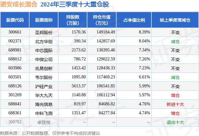 根据2024基金Q3季报公募基金重仓股数据,重仓该股的公募基金共27家,其中持有数量最多的公募基金为诺安成长混合。诺安成长混合目前规模为177.75亿元,最新净值1.38(12月31日),较上一交易日下跌3.97%,近一年上涨12.2%。该公募基金现任基金经理为刘慧影。刘慧影在任的基金产品包括:诺安优化配置混合A,管理时间为2022年8月3日至今,期间收益率为17.1%;诺安积极回报混合A,管理时间为2023年9月29日至今,期间收益率为18.89%。