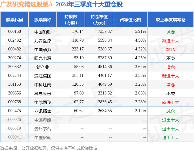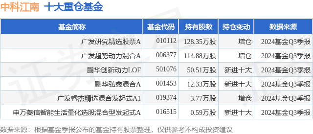 根据2024基金Q3季报公募基金重仓股数据,重仓该股的公募基金共6家,其中持有数量最多的公募基金为广发研究精选股票A。广发研究精选股票A目前规模为10.47亿元,最新净值0.4934(12月31日),较上一交易日下跌1.6%,近一年下跌0.64%。该公募基金现任基金经理为蒋科。蒋科在任的基金产品包括:广发趋势动力混合A,管理时间为2020年4月30日至今,期间收益率为36.28%;广发睿杰精选混合发起式A1,管理时间为2023年11月24日至今,期间收益率为0.77%。