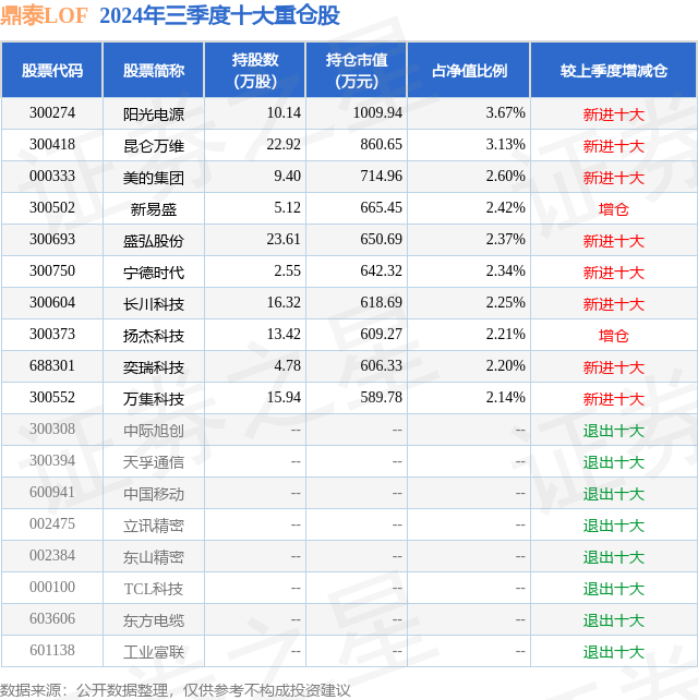 根据2024基金Q3季报公募基金重仓股数据,重仓该股的公募基金共5家,其中持有数量最多的公募基金为鼎泰LOF。鼎泰LOF目前规模为2.75亿元,最新净值1.2969(12月31日),较上一交易日下跌3.27%,近一年下跌6.66%。该公募基金现任基金经理为薛冀颖。薛冀颖在任的基金产品包括:平安安盈灵活配置混合A,管理时间为2020年11月3日至今,期间收益率为7.5%;平安优质企业混合A,管理时间为2021年7月19日至今,期间收益率为-35.58%;